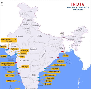 East Coast: Kolkata, Haldia, Paradip, Visakhapatnam, Kakinada, Krishnapatnam, Chennai, Ennore, Tuticorin